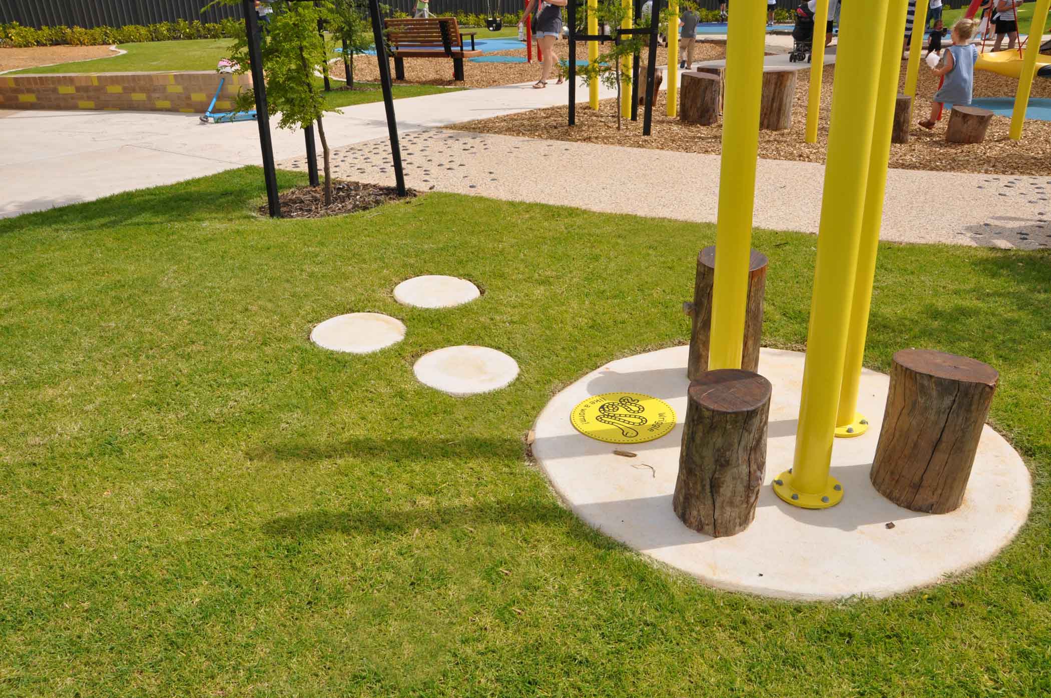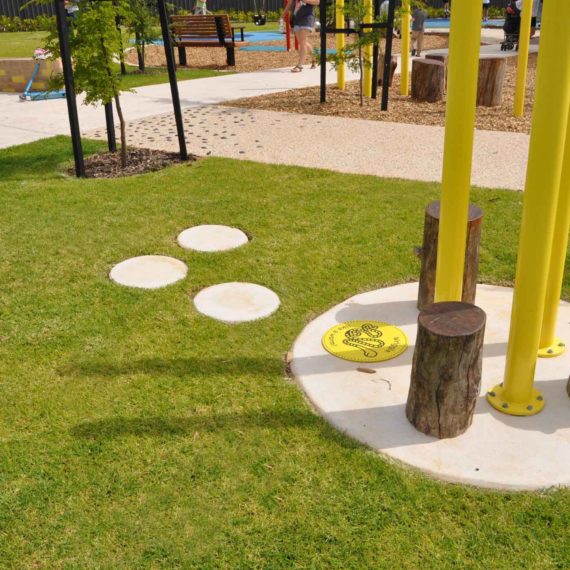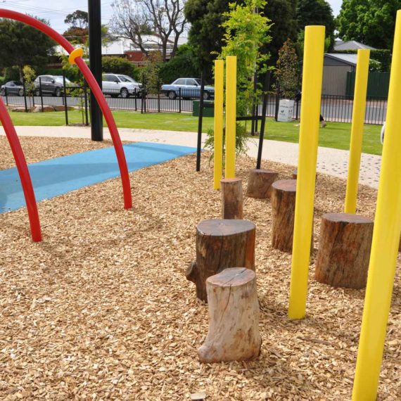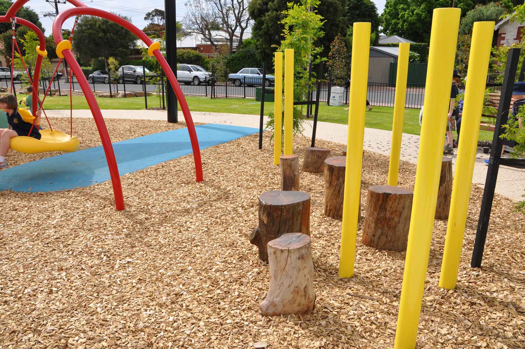 Katherine Street Reserve combines proprietary play items with nature play based elements such as mounding, a sand pit with stepping logs, a ‘forest’ and rock seating. An exciting community space has been created and further enhanced with interpretive signage elements aimed at children, designed in conjunction with Studio Pinata.